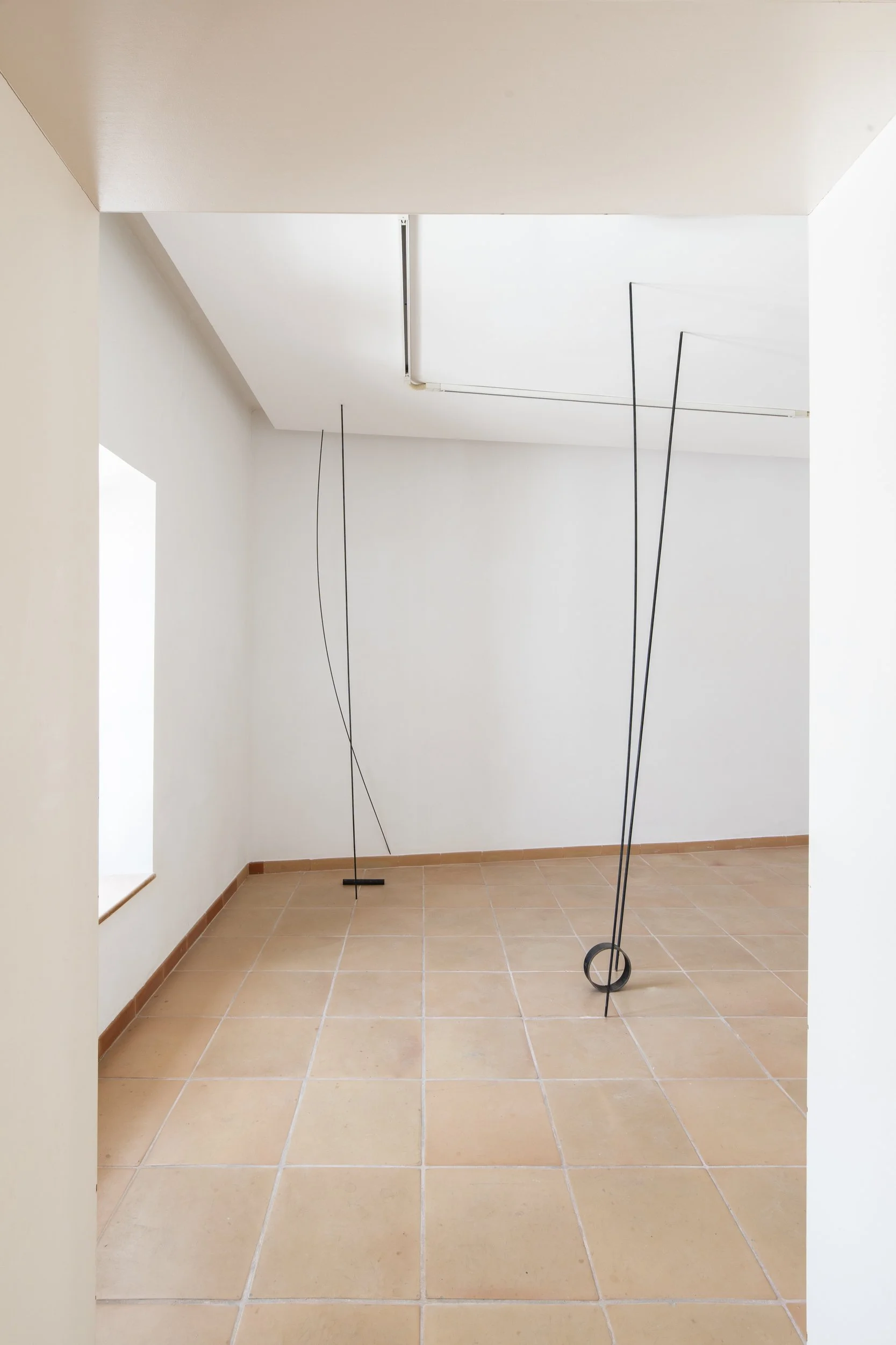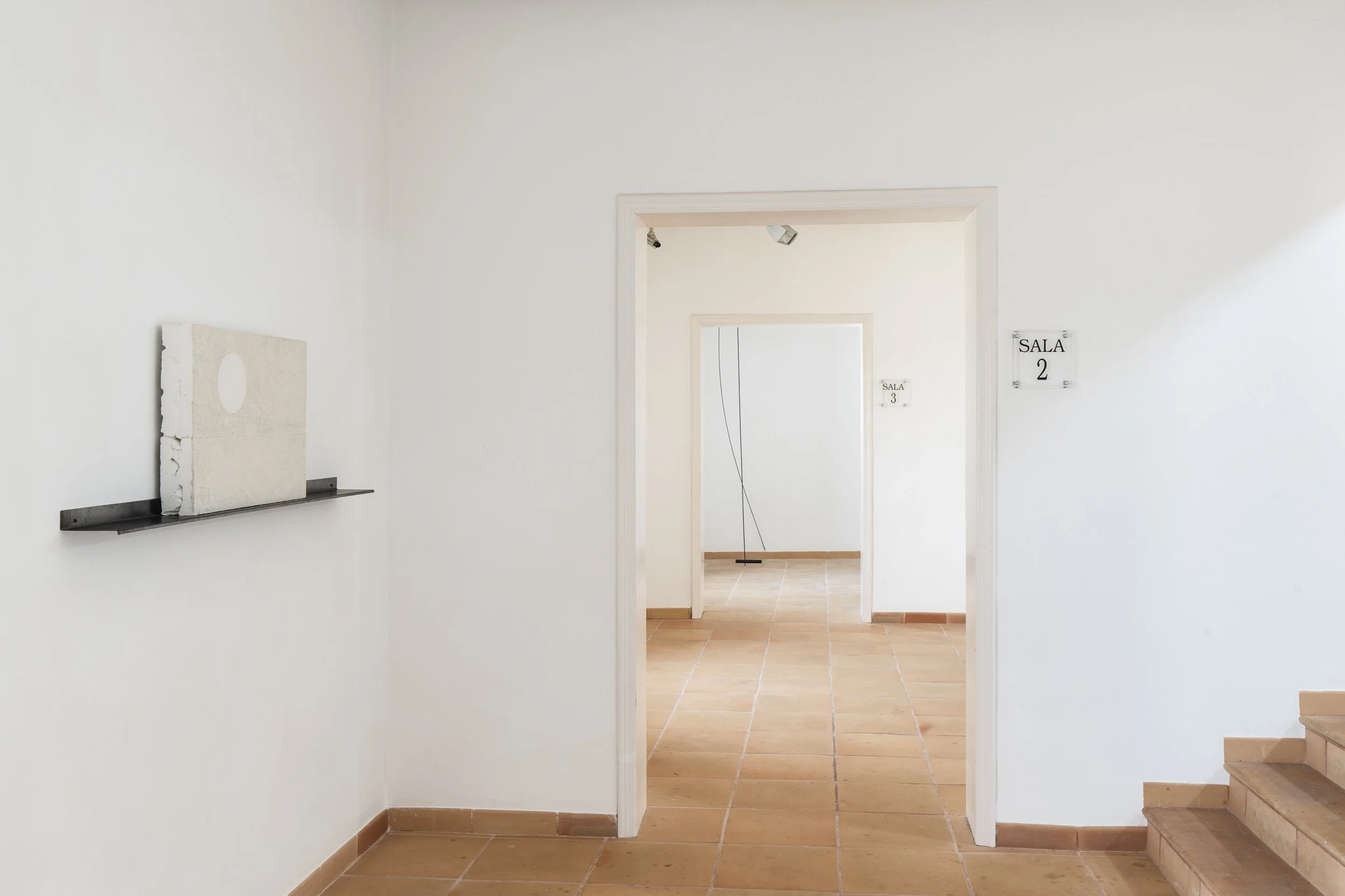 In a time that privileges efficiency, connectivity, and the logic of productivity, Xim Llompart’s work invites us to pause. His sculptures and installations, built from simple materials such as plaster, steel, and melamine, stand as a form of poetic resistance against the vertiginous rhythm of the contemporary world. Each fragment, each crack, each structure suspended or resting in apparent fragility speaks to us of the essential: of what remains when everything else has been swept away by excess.. The works distributed across the three rooms form an intimate topography of uncertainty.